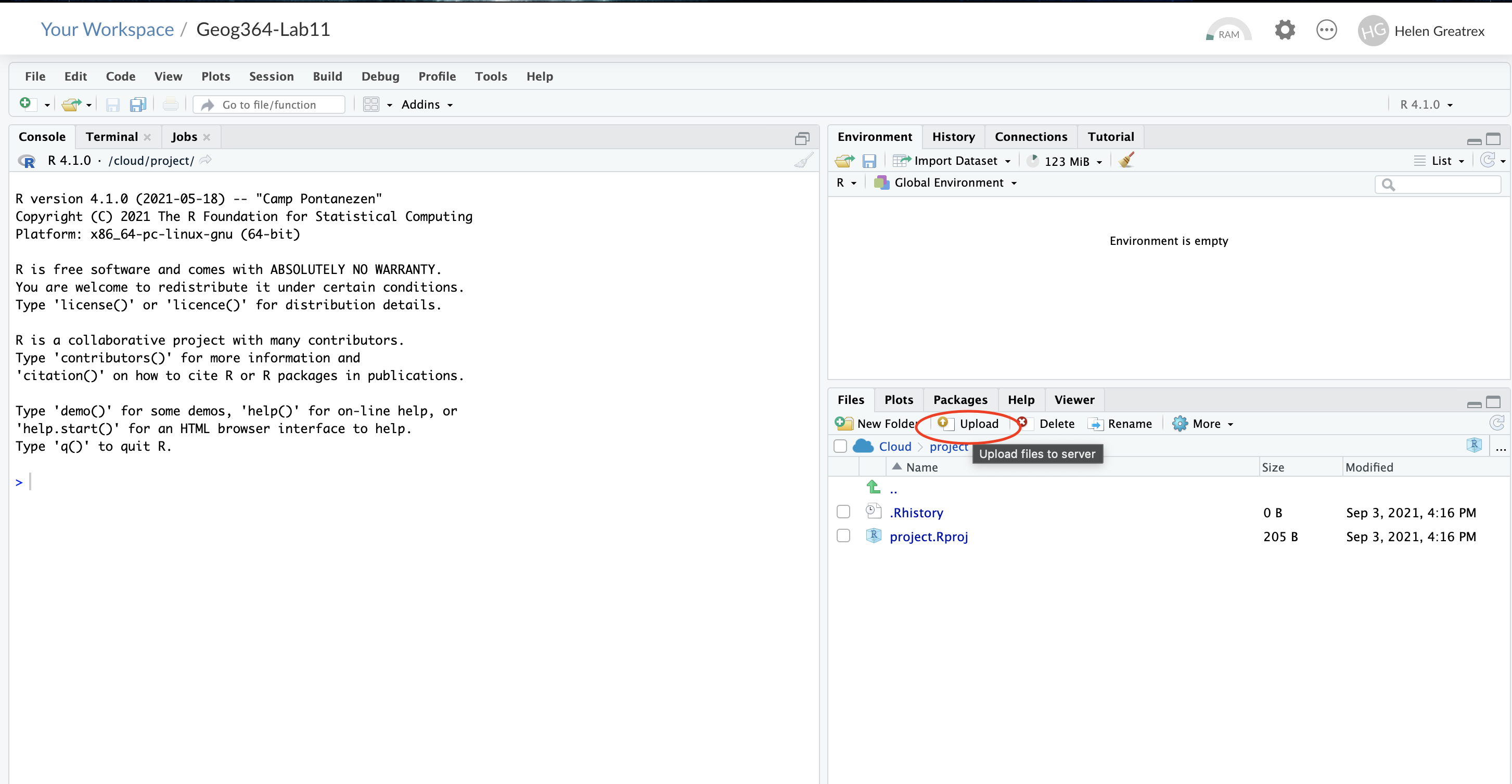 6. Unzip. Double click the project.RProj file to reopen your lab on your computer
